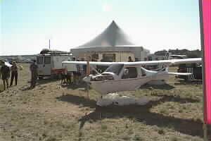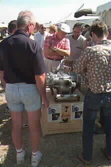 On the Saturday morning, we met our 'hosts' Willem and Isabelle; they had driven the previous day for many hours from the South of France where they run a successful microlight club and school, as well as the Jabiru dealership. For once, the weather in the south was terrible, with low cloud and rain, whereas at the show it was CAVOK all weekend! Our Jabiru was displayed on the stand, and there was lots of interest in both the aeroplane and the engine, an example of which was displayed on its packing case in a prominent position. My French has never been too good (except for ordering beer, which I seem to be able to do effortlessly in most European countries), but over the weekend I learned to converse (very basically, with lots of arm waving) with other aviators in terms of the Jabiru's performance and attributes. One friendly guy insisted I tell him how many kilometres I had flown to the show, how much fuel I used and how long it took! I had to send him away while I got the rule out on the chart...........I nearly ran out of fingers and thumbs working it out, but he seemed impressed with the answer anyway.