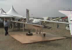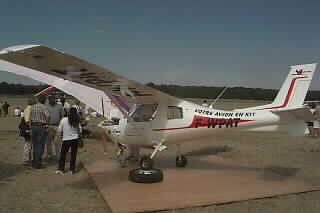 On the Saturday morning, we met our 'hosts' Willem and Isabelle; they had driven the previous day for many hours from the South of France where they run a successful microlight club and school, as well as the Jabiru dealership. For once, the weather in the south was terrible, with low cloud and rain, whereas at the show it was CAVOK all weekend! Our Jabiru was displayed on the stand, and there was lots of interest in both the aeroplane and the engine, an example of which was displayed on its packing case in a prominent position. My French has never been too good (except for ordering beer, which I seem to be able to do effortlessly in most European countries), but over the weekend I learned to converse (very basically, with lots of arm waving) with other aviators in terms of the Jabiru's performance and attributes. One friendly guy insisted I tell him how many kilometres I had flown to the show, how much fuel I used and how long it took! I had to send him away while I got the rule out on the chart...........I nearly ran out of fingers and thumbs working it out, but he seemed impressed with the answer anyway.
