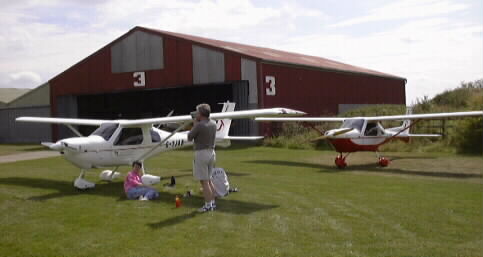 Claire and myself in G-VJAB with Clive James and Graham Ferguson in G-JBSP ready to leave from Southery in Norfolk |