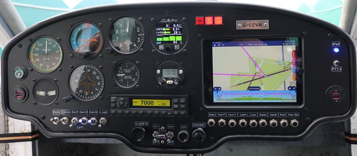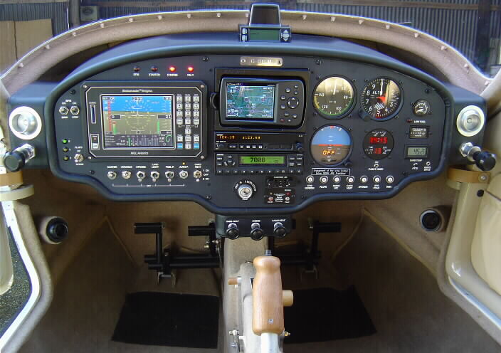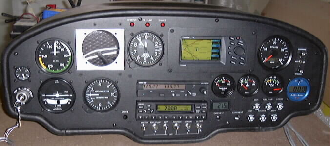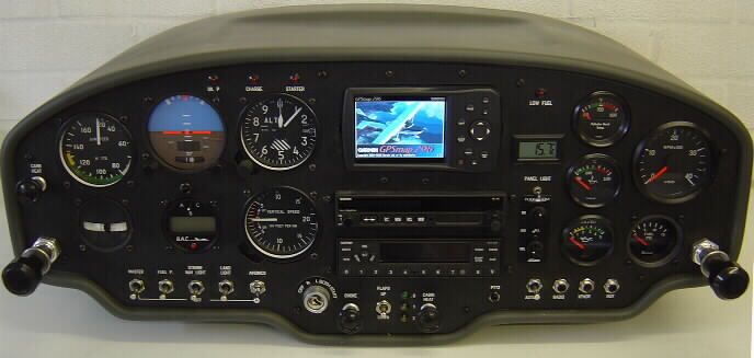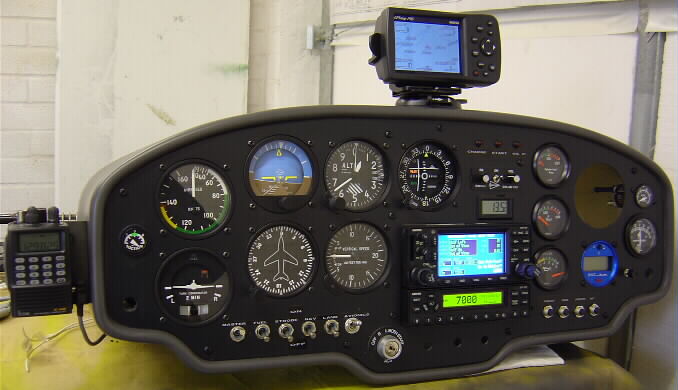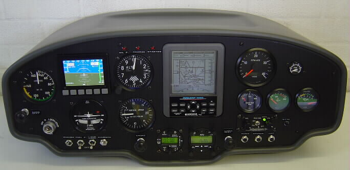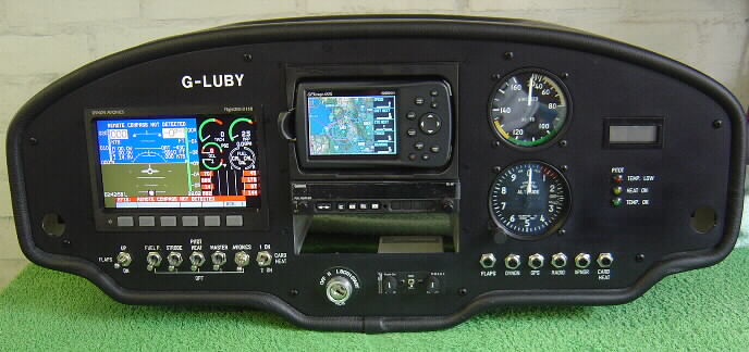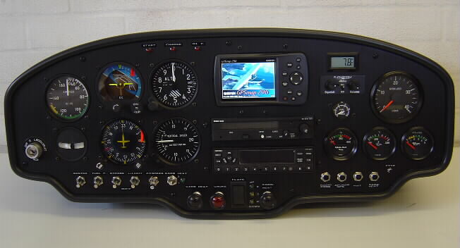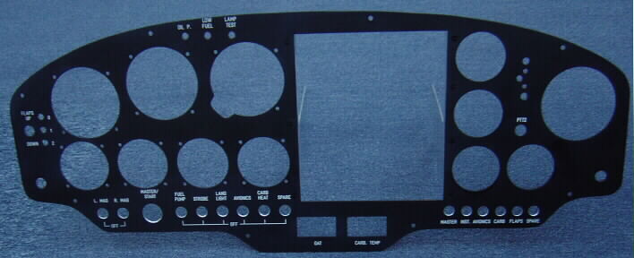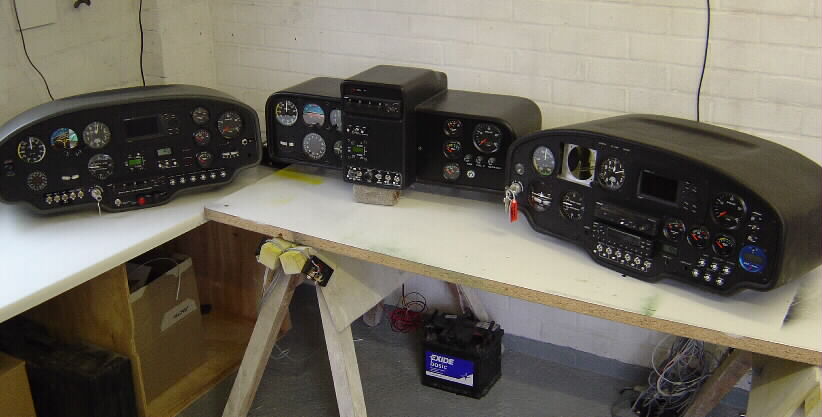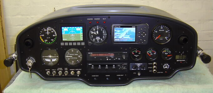 Panel fronts are custom made, so almost any layout is possible, including the flush fitting of awkward shape GPS units etc. Prices vary depending on what options you choose eg. just the basics as supplied by Jabiru up to a full IFR panel. You supply the avionics and instruments and I supply circuit breaker switches and warning lights, carb temp monitors etc. Prices start at £900 for a painted plug and play panel. |